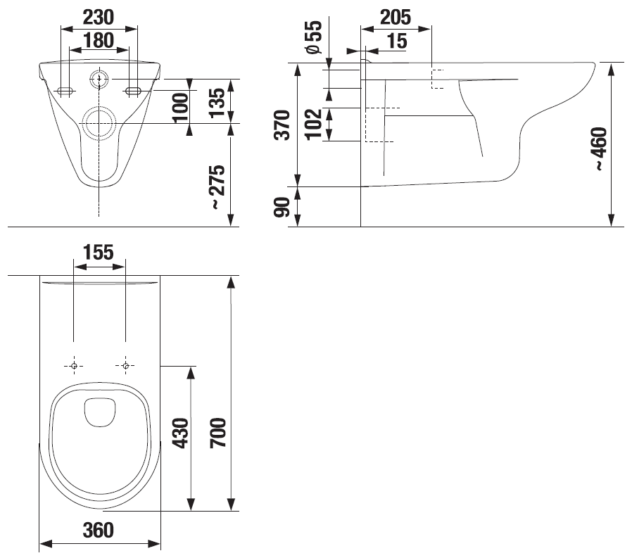 Závěsná WC mísa 35,5 x 53cm, bílá WC sedátko je nutno objednat zvlášť