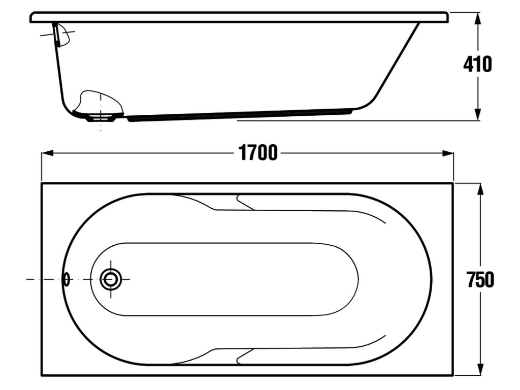 Jika Lyra Plus 170 x 75 cm H2328390000001 vana akrylátová obdélníková vč. noh