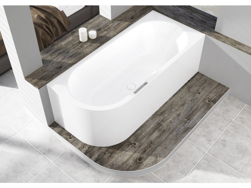 Vana Centro Duo 1 model 130 pravá od firmy Kaldewei má vnější tvar s pravým zakulaceným rohem, velkou vnitřní hloubku a dvě identické zádové části.