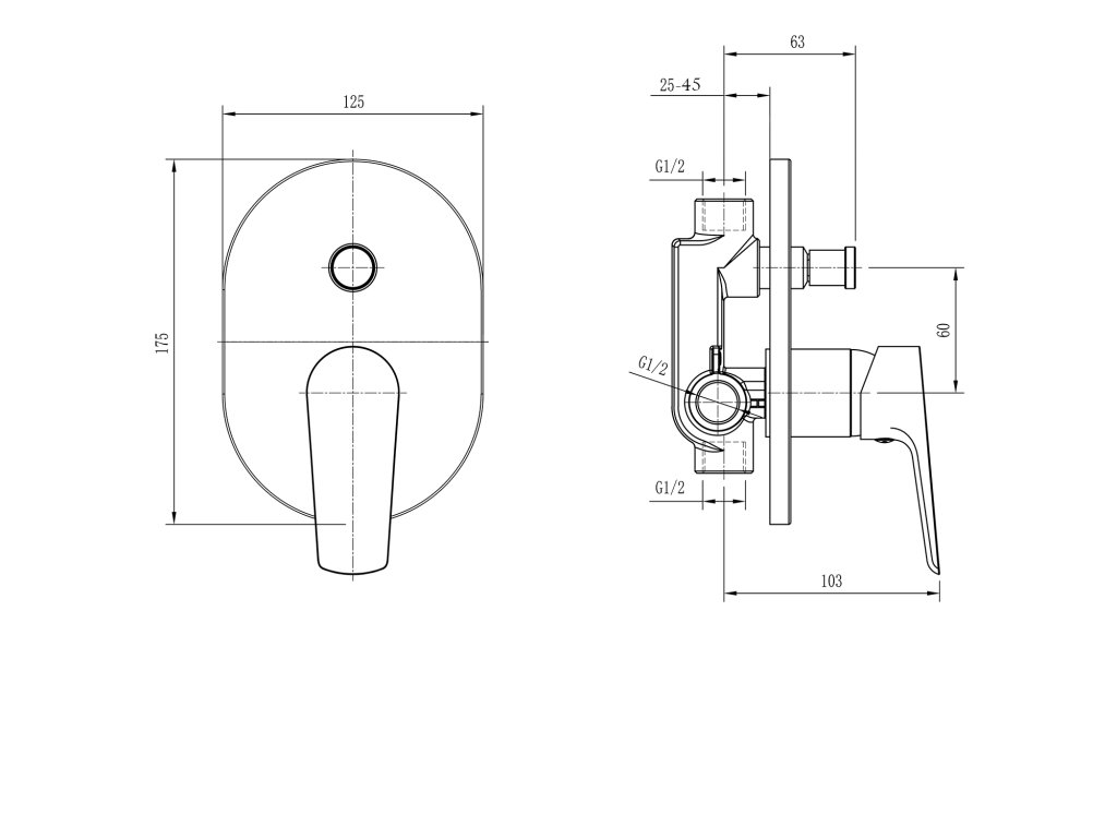 Aqualine Lotta LT742 podomítková sprchová baterie 2 výstupy chrom