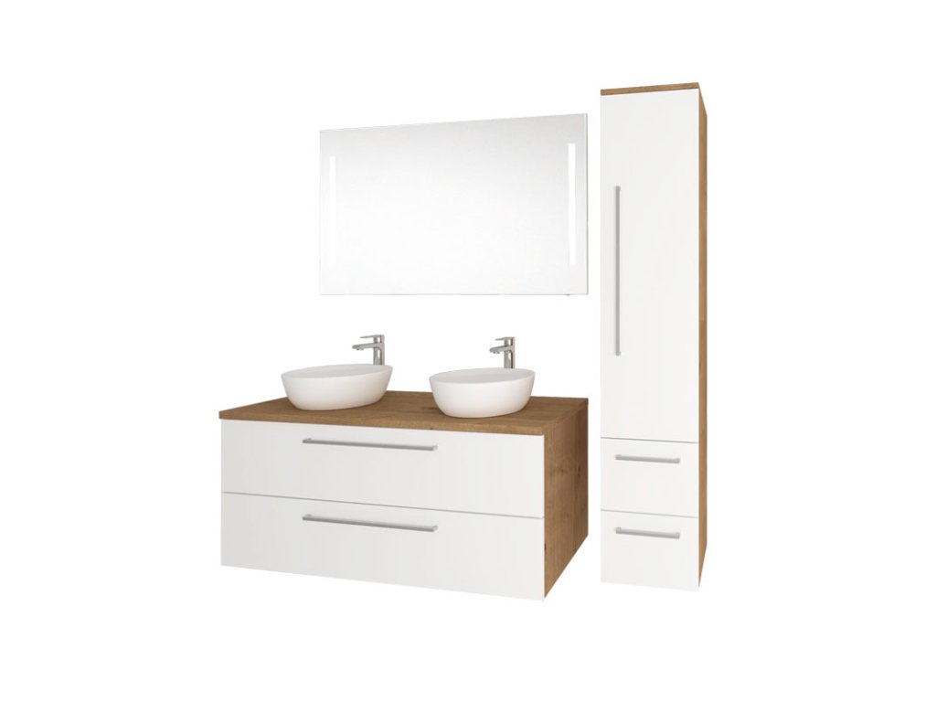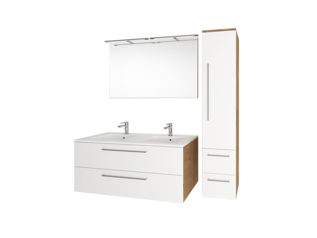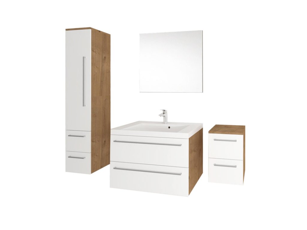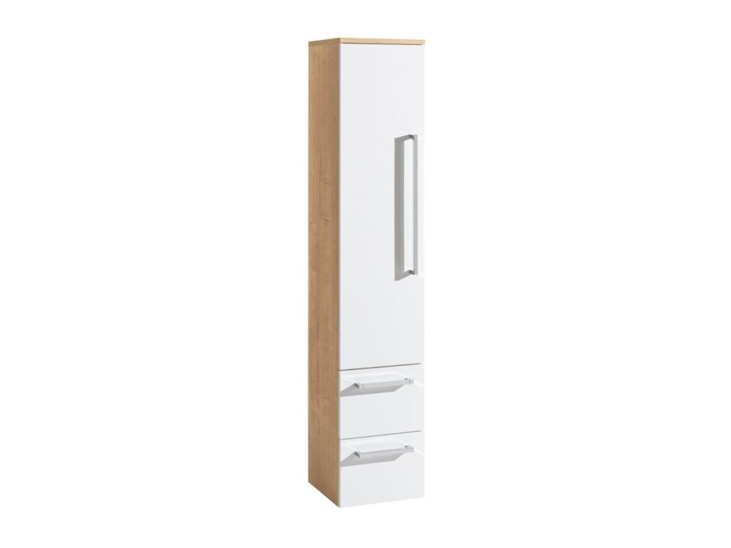 Jednoduchosť, efektívnosť, elegancia. To sú hlavné spoločné menovatele kúpeľňového nábytku Bino, ktorý ozdobí každú kúpeľňu. Vďaka kombinácii inovácií a spoľahlivého prístupu, potom vzniká kvalitný a zároveň veľmi moderný nábytok. Farebné kombinácie biely lesk, biely lesk + dub zaisťujú, že bude nábytok ladiť do každého typu kúpeľne. Užívateľsky veľmi praktické sú potom dve plnovýsuvné zásuvky so samozatváracími pojazdmi a tlmením Strong. Skrinka sa dodáva v zloženom stave.