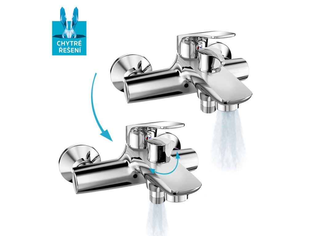 Tato vanová nástěnná baterie, patří do řady vodovodních baterií Eve, která vyniká spojením elegantního těla a tvarově jednoduché a přesto efektní páky.