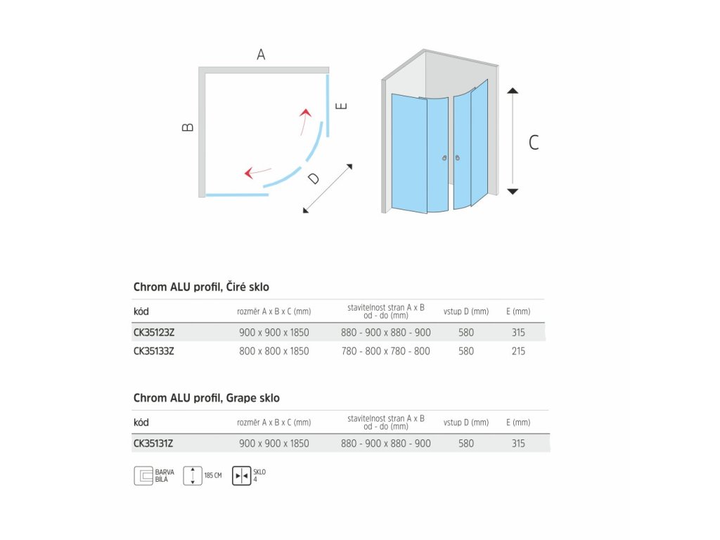 Sprchové kouty ze série Kora, která vnáší do ekonomické třídy nový rozměr kvality. Tloušťka bezpečnostního skla je 4 mm, v designu skla Čiré. Sprchový kout je osazen posuvnými dveřmi, které mají ložiskové pojezdy s excentrickým usazením (možnost perfektního seřízení). Dorazy zajišťují minimální nárazy při otevírání a zavírání sprchového koutu.Spodní pojezdy umožňují odklopení posuvné části sprchového koutu a vyčištění běžně nedostupných míst. Těsnost mezi pevnou a posuvnou částí je zajištěna stíracími silikonovými lištami na obou dvou částech, nejedná se však o hermeticky uzavřený výrobek.