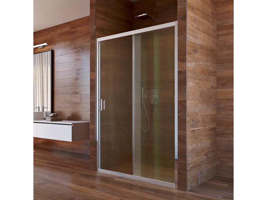 Hliníkové profily v barvě chrom, sklo Point, síla skla 6 mm, rozměr 100 cm, výška 1900 mm.