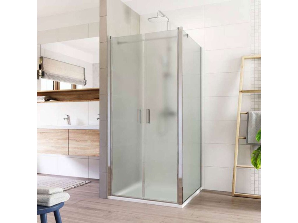 čtvrtkruh s dvoukřídlými dveřmi - nerovnostranné provedení - aluchrom/sklo Screen