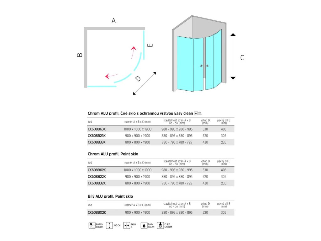 Lima je řada sprchových koutů Mereo, která navodí pocit čistého designu v každé moderní koupelně. Rovné hladké plochy, čisté linie a ostré hrany profilů umocňují pocit exkluzivity. Kvalitní skleněné výplně s bezpečnostním sklem je možné zvolit jak v čirém provedení, tak v neprůhledném provedení se sklem Point, které navodí lepší pocit intimity při sprchování.Snadné zavření a těsnost zajišťují stírací a silikonové lišty, opatřené na vstupní části magnetem, nejedná se však o hermeticky uzavřený výrobek.