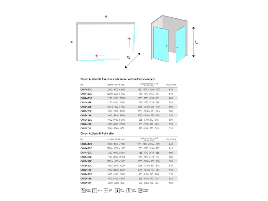 Lima je nejnovější řada sprchových koutů Mereo, která navodí pocit čistého designu v každé moderní koupelně. Rovné hladké plochy, čisté linie a ostré hrany profilů umocňují pocit exkluzivity. Kvalitní skleněné výplně s bezpečnostním sklem je možné zvolit jak v čirém provedení, tak v neprůhledném provedení se sklem Point, které navodí lepší pocit intimity při sprchování.Snadné zavření a těsnost zajišťují stírací a silikonové lišty, opatřené na vstupní části magnetem, nejedná se však o hermeticky uzavřený výrobek.