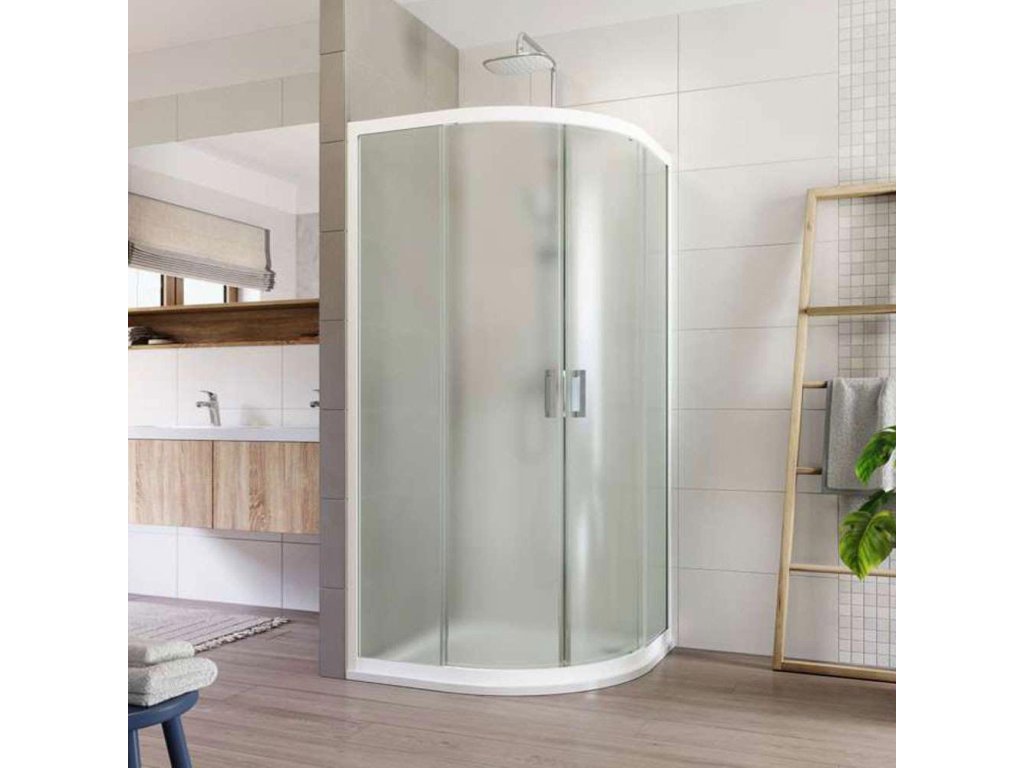 čtvrtkruh s dvoukřídlými dveřmi - nerovnostranné provedení - aluchrom/sklo Screen