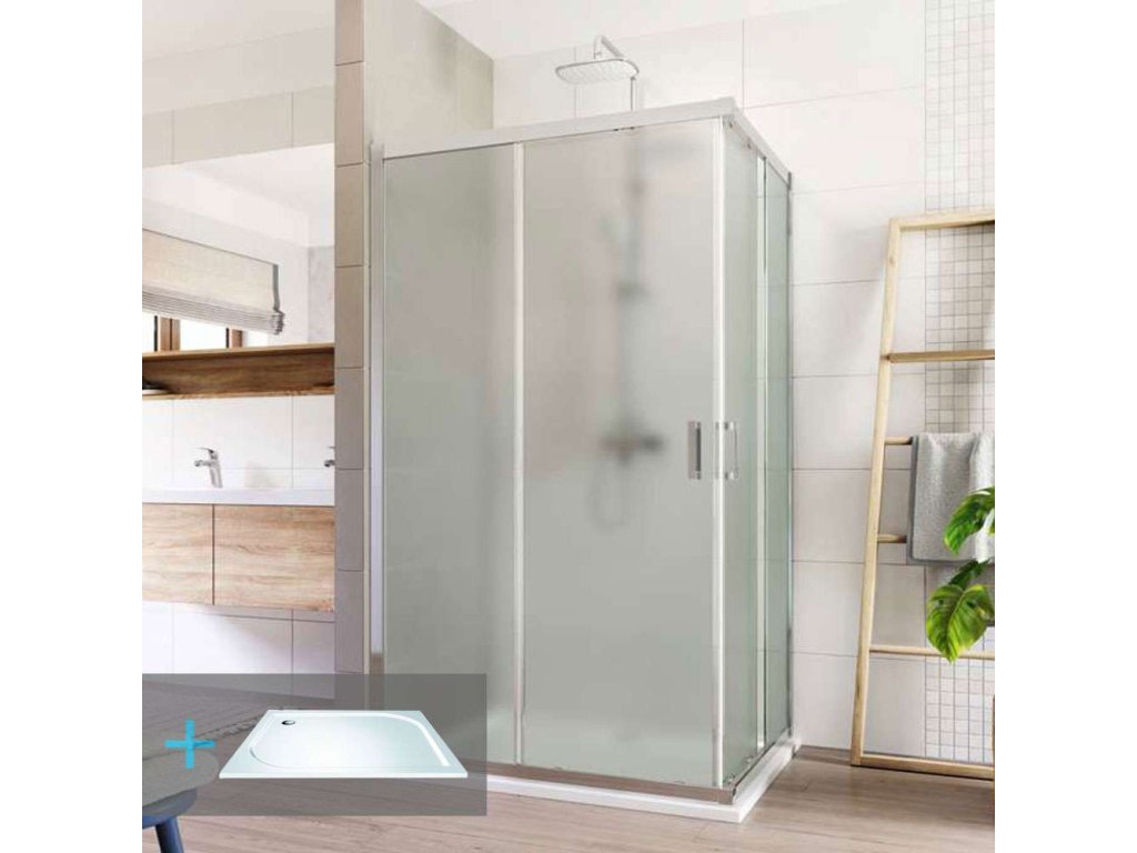Mereo Lima sprchový set obdélník 100x90 cm sklo Point vanička z litého mramoru ALU chrom CK82422KM