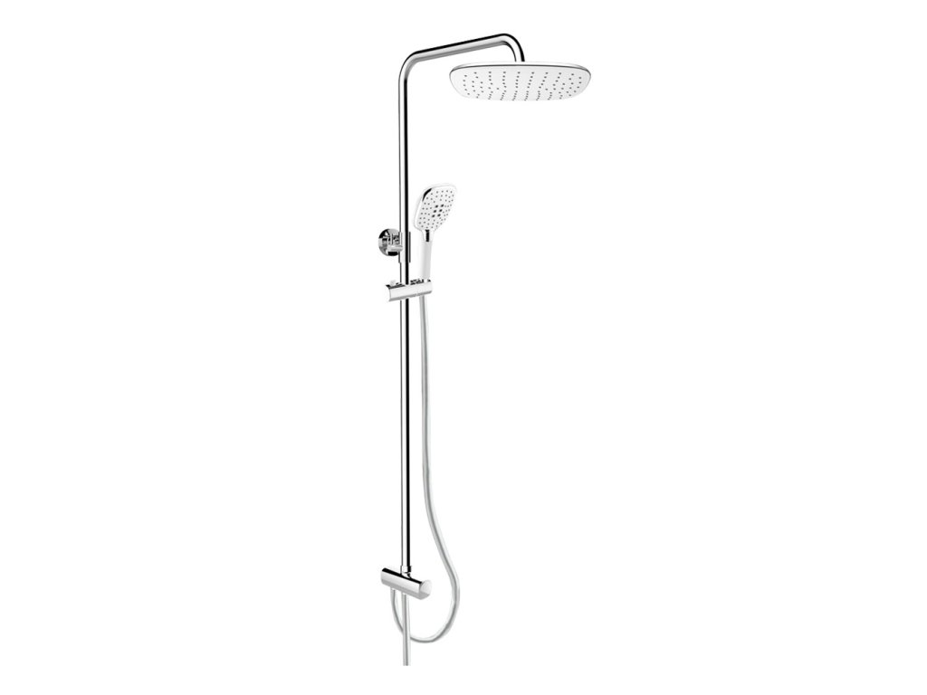 Mereo sprchový set s tyčí hranatý bílá hlavová sprcha a třípolohová ruční sprcha pochromovaná mosaz chrom CB95001SW2