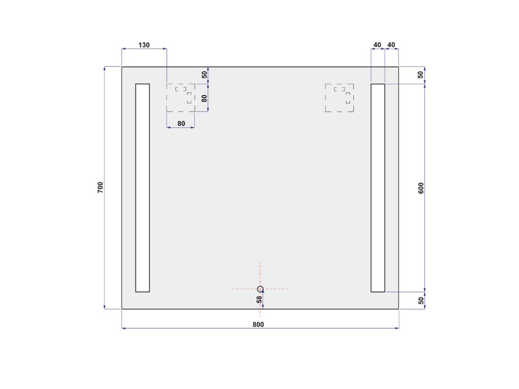 Elegantní zrcadlo s LED osvětlením. Zrcadlo se spouští dotykovým senzorem umístěným se spodní přední části zrcadla. Zrcadlo je vybaveno úchyty (závěsy i vhodné háčky na zeď) pro svislé zavěšení. U zrcadel s osvětlením doporučujeme vývod elektřiny umístit ""na střed zrcadla"". Délka přívodního kabelu je 1m umožňuje pohodlnou montáž.