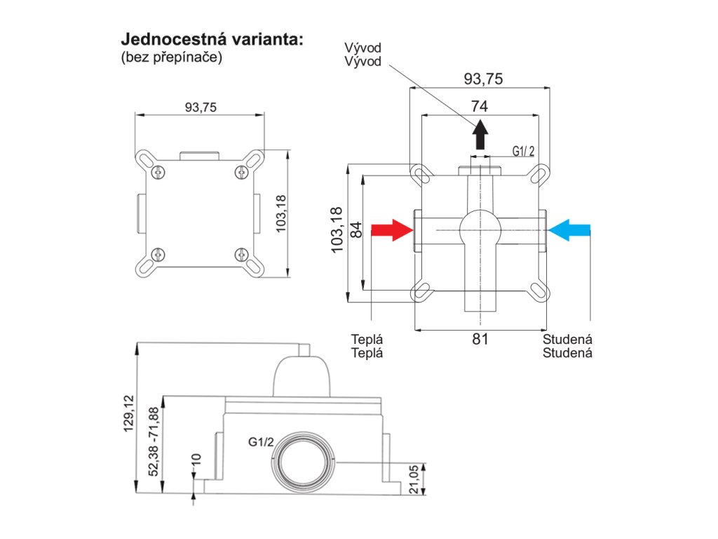 Jednocestná varianta (bez přepínače) je určena do sprchových koutů s jednou sprchou nebo k vaněs napouštěním přepadem, bez možnosti sprchování.