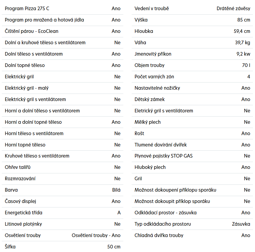 - rozměry spotřebiče (v x š x h): 85 x 50 x 59,4 cm
