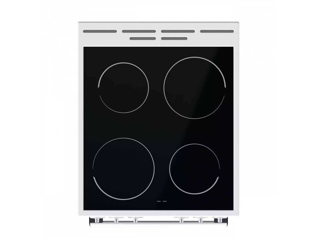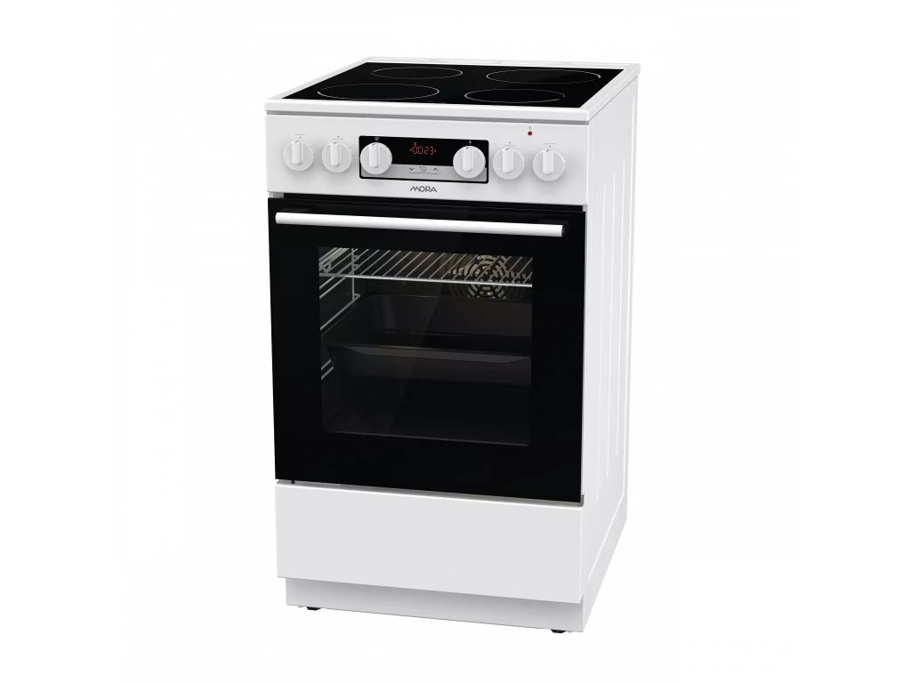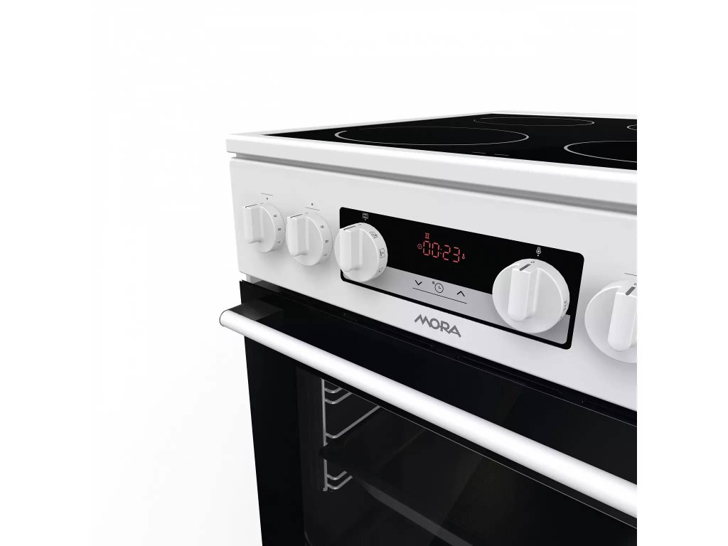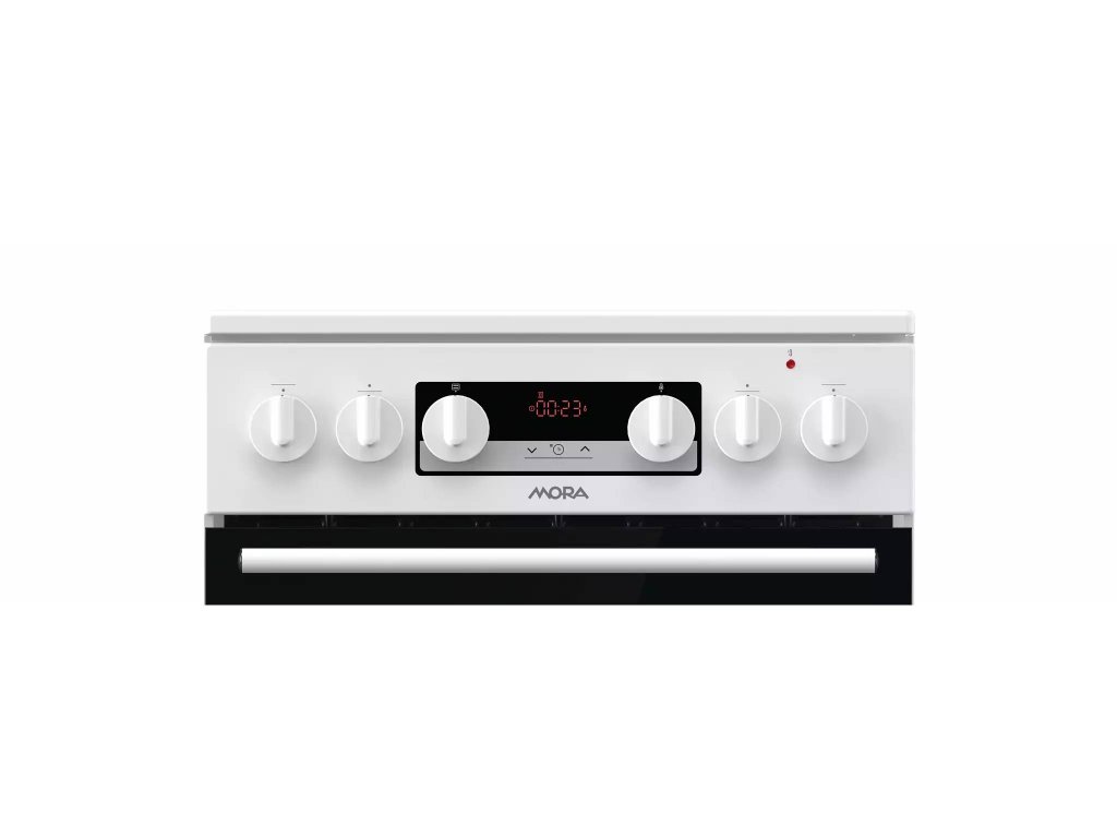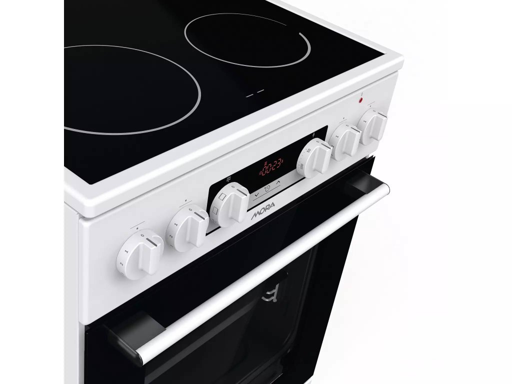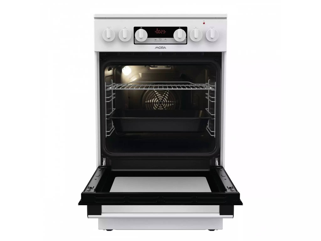Elektrický sporák C 5655 BW v bílém provedení se sklokeramickou deskou a multifunkční troubou energeticky spadá do úsporné třídy A. Materiál použitý na varnou desku je tepelně odolný, snadno omyvatelný a vydrží zátěž až 100 kg a s ukazatelem zbytkového tepla na desce jste chráněni před nepříjemným popálením a jinými nehodami. Díky digitálnímu časovému spínači s hodinami se Vám již nikdy nespálí oběd, tato praktická funkce Vám přinese mnoho užitku. Lze nastavit odložený start a ukončení pečení, pouze ukončení pečení a minutka, samozřejmostí je nastavený aktuální čas. Výkonná multifunkční trouba o objemu 70 l má celkem osm různých programů s přesnou regulací teploty v rozmezí 50-275 °C. Připravíte s ní jídla rychle a šetrně, takže si zachovají maximum vitamínů a stopových prvků. Mezi funkcemi naleznete horní a dolní topné těleso, kruhové těleso s ventilátorem či program Pizza. Horkovzdušné pečení umožňuje péct ve více vrstvách najednou i různých druhů pokrmů, kdy při pečení nedochází k vzájemnému ovlivnění odlišných chutí a vůní například maso s pečivem. Nové bezpečné závěsy dvířek zaručují bez Vaší asistence velmi tiché a šetrné zavírání dvířek trouby. Celý prostor trouby je osvětlený pro větší přehlednost o stavu pokrmu. Ve spodní části sporáku je praktický úložný prostor, do kterého snadno uložíte příslušenství v podobě roštu a MAXI pekáče XXL o objemu až 8 l.