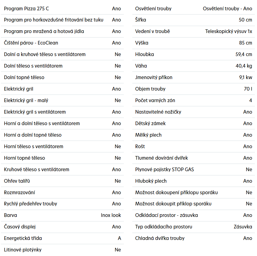 - rozměry spotřebiče (v x š x h): 85 x 50 x 59,4 cm