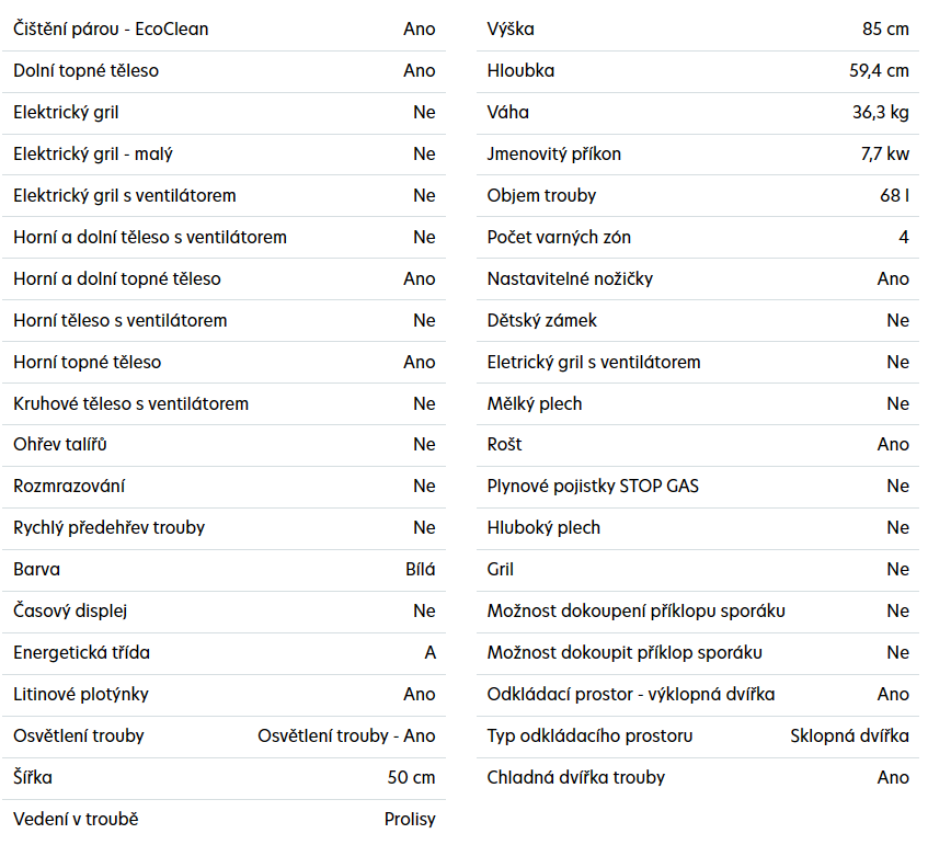 - rozměry spotřebiče (v x š x h): 85 x 50 x 59,4 cm