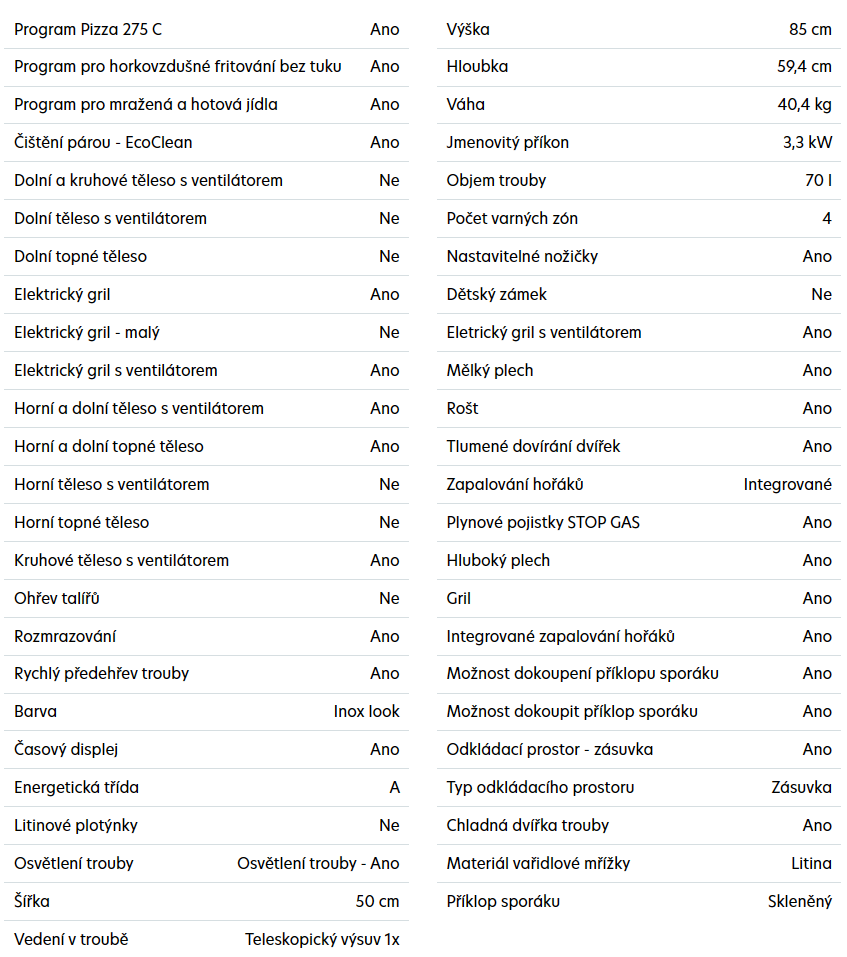 - Kombinovaný sporák s multifunkční troubou s funkcí páry
