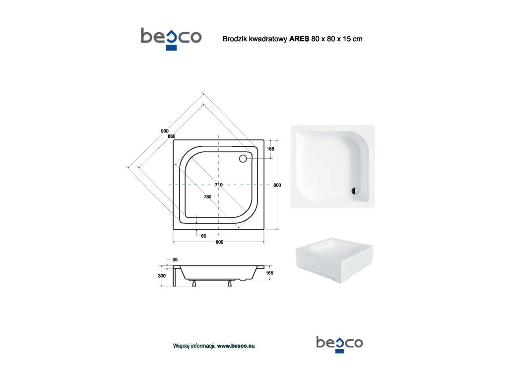 Besco ARES 80 x 80 cm VANKARES80 sprchová vanička bez nožiček