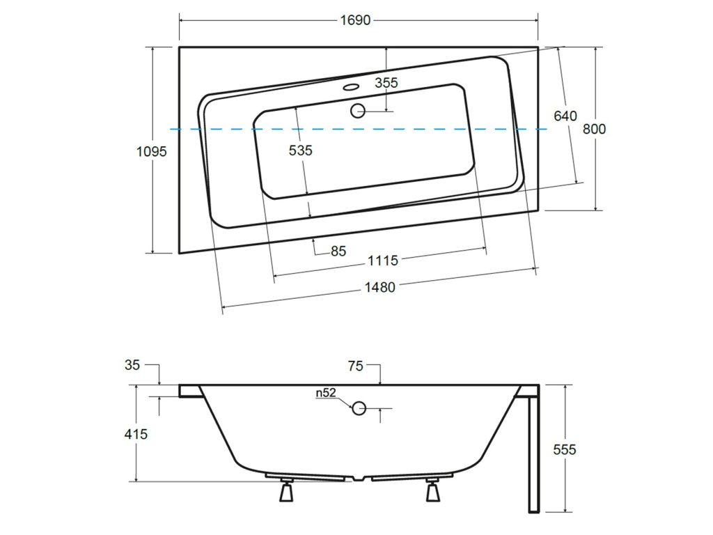 Rozměr vany: 170x110 cm