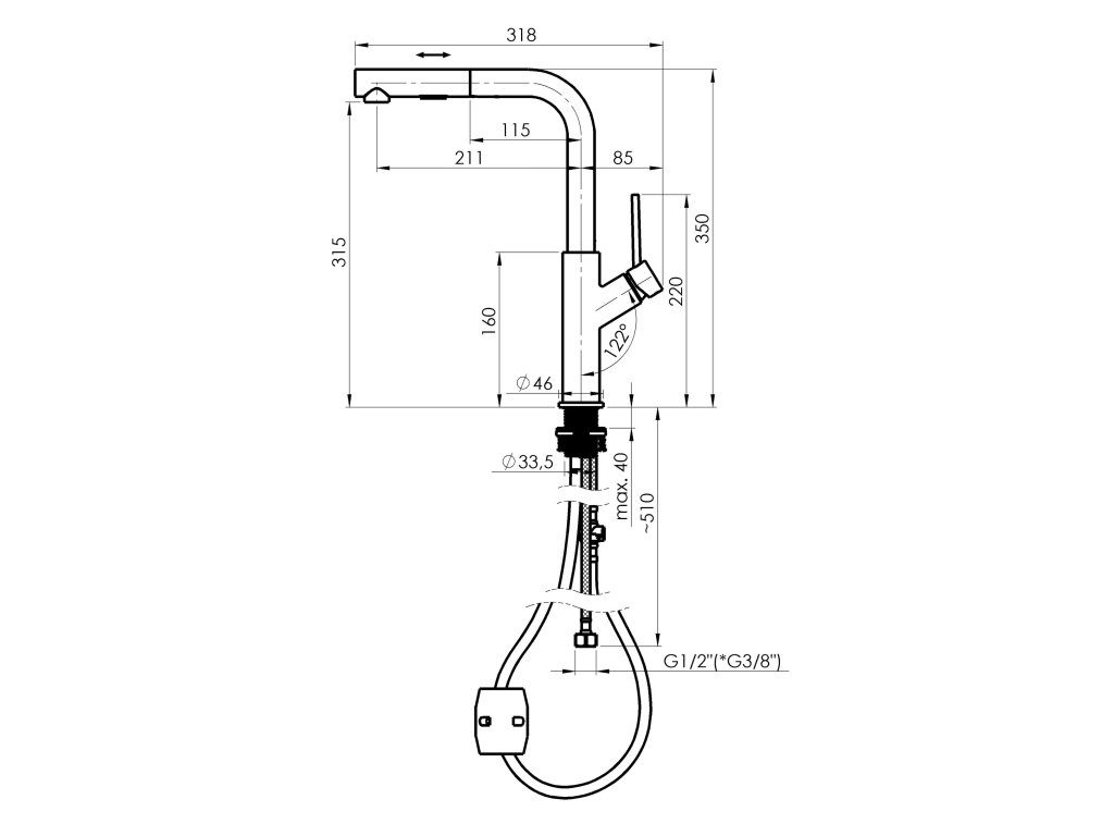 - Vytahovací hadice s 2-polohovou sprškou a kvalitním perlátorem