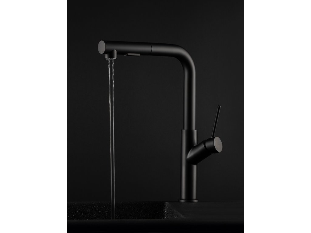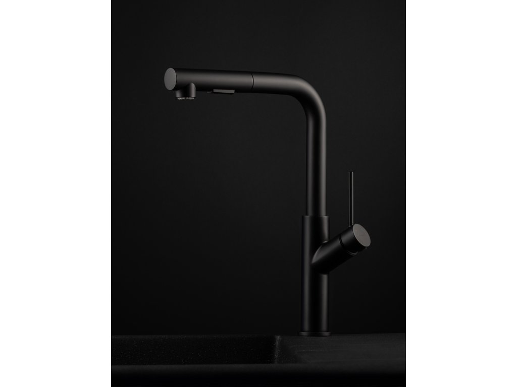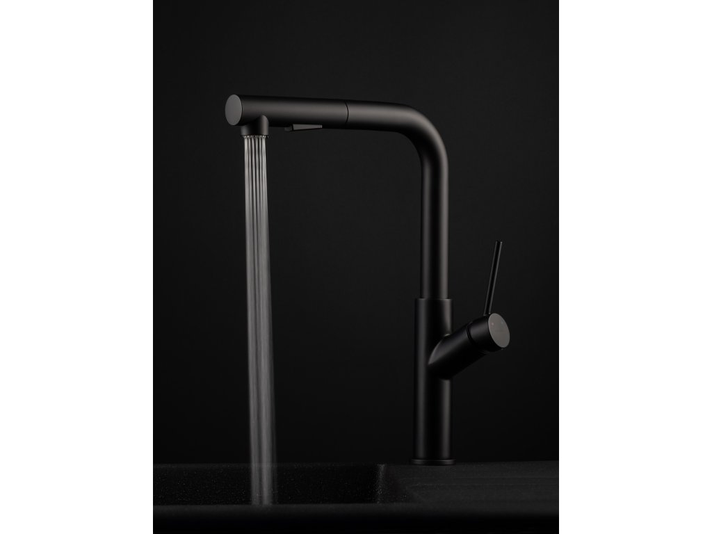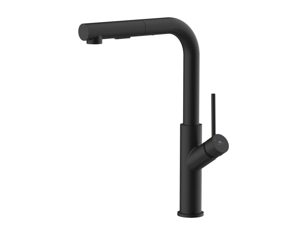 Dřezová vodovodní baterie BONA-35 černá barva s vytahovací sprškou, kterou nabízíme ve dvou barevných variantách (chrom a grafit) BONA-35 v černé barvě v mnohém překračuje střední kategorii, do které se řadí svou příznivou cenou Baterie je v moderním designu, má velmi praktickou vytahovací 2-polohovou spršku