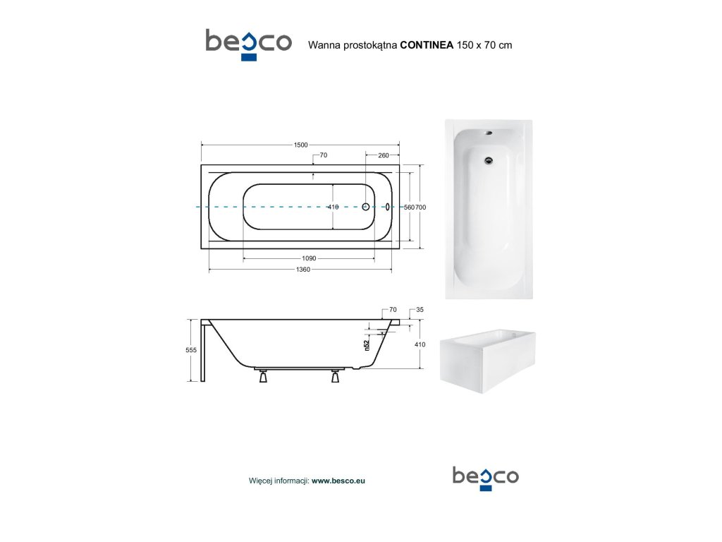 Besco CONTINEA 150 cm VANCONT150 vana bez nožiček