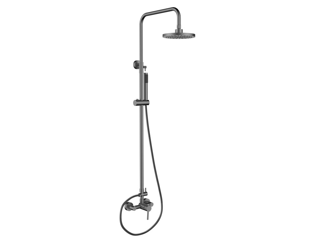 Jedinečný nástěnný sprchový set s příslušenstvím DECCO/ILLUSION v grafitové barvě s elegantními zaoblenými tvary.