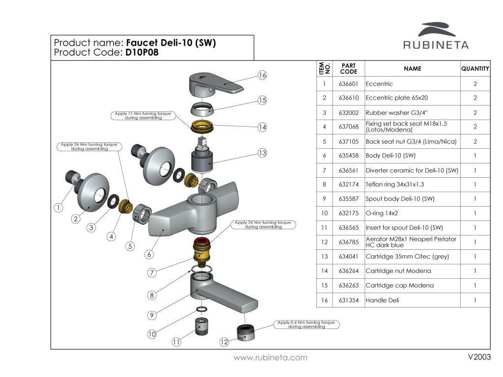 Vanová nástěnná baterie DELI-10 SW vyniká vysoce kvalitním zpracováním a spolehlivou funkčností všech součástí a materiálů.
