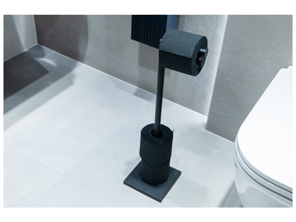 Volně stojící držák toaletního papíru, který je skvělý svojí jednoduchostí a minimalistickým designem. Vyroben je z kvalitní, černě lakované oceli. Držák - stojan pojme celkem 5 rolí toaletního papíru.