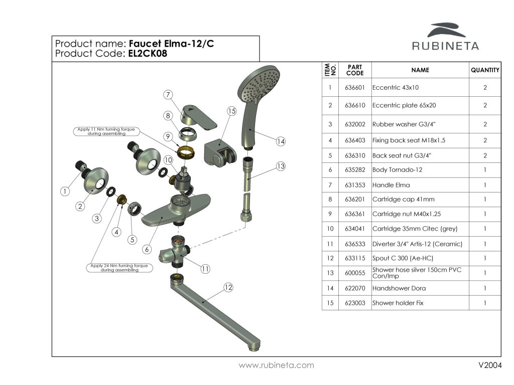 Vanová nástěnná vodovodní baterie ELMA-12/C vyniká vysoce kvalitním zpracováním a spolehlivou funkčností všech součástí a materiálů.