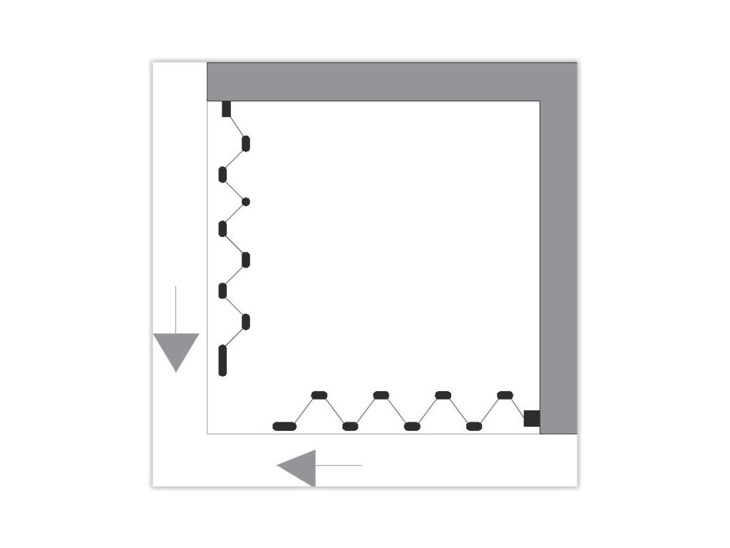 - čtvercová zástěna se zavíráním do rohu (středu)