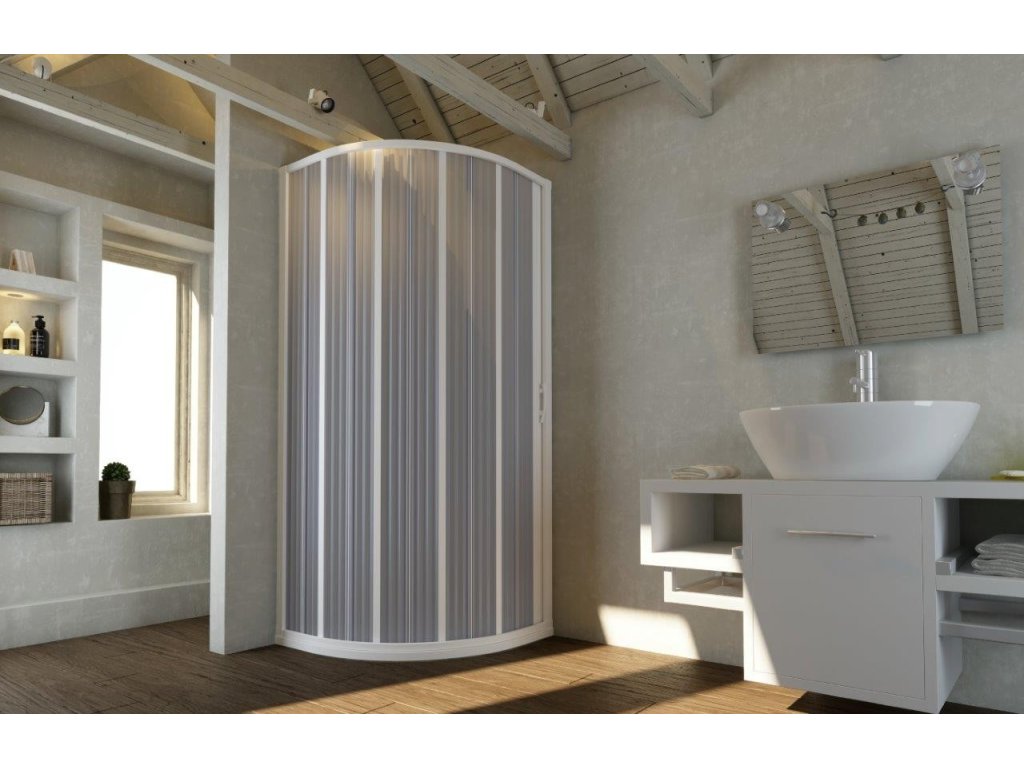 Plastový čtvrtkruhový sprchový kout LUNA NEW vynikají vysoce kvalitním zpracováním a spolehlivou funkčností všech součástí a materiálů. Zástěnu LUNA lze vyrobit s různými rádiusy (R50, R55, R60 atd).