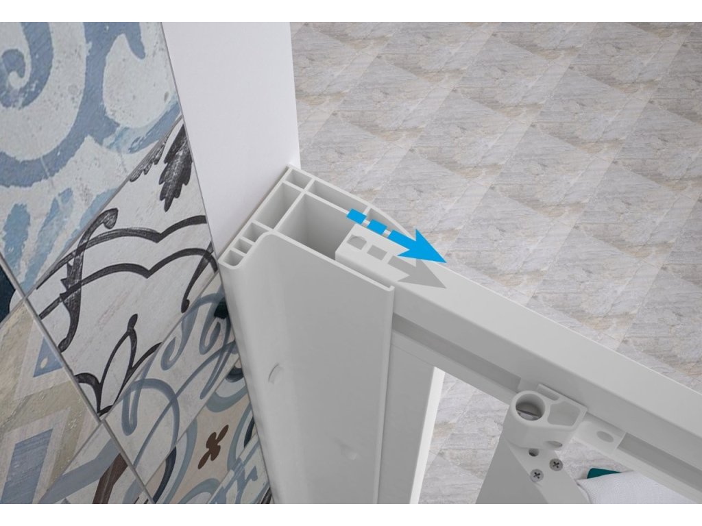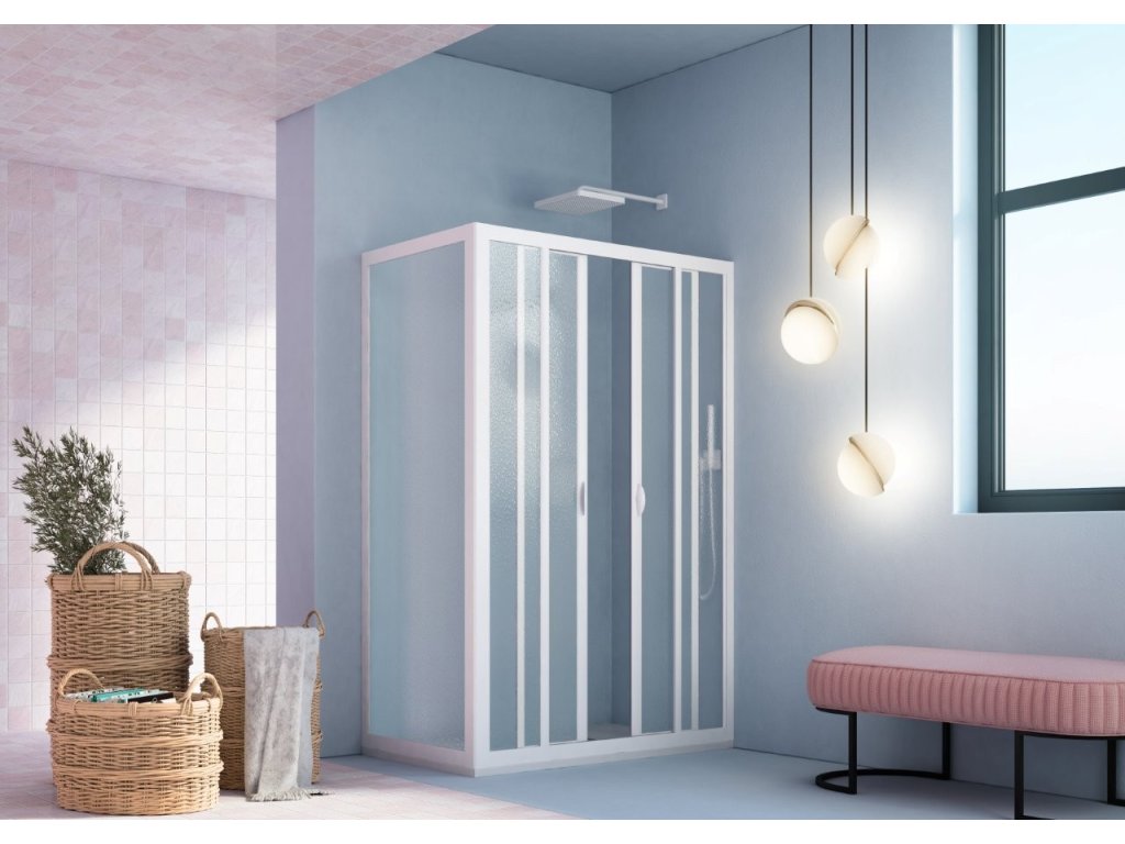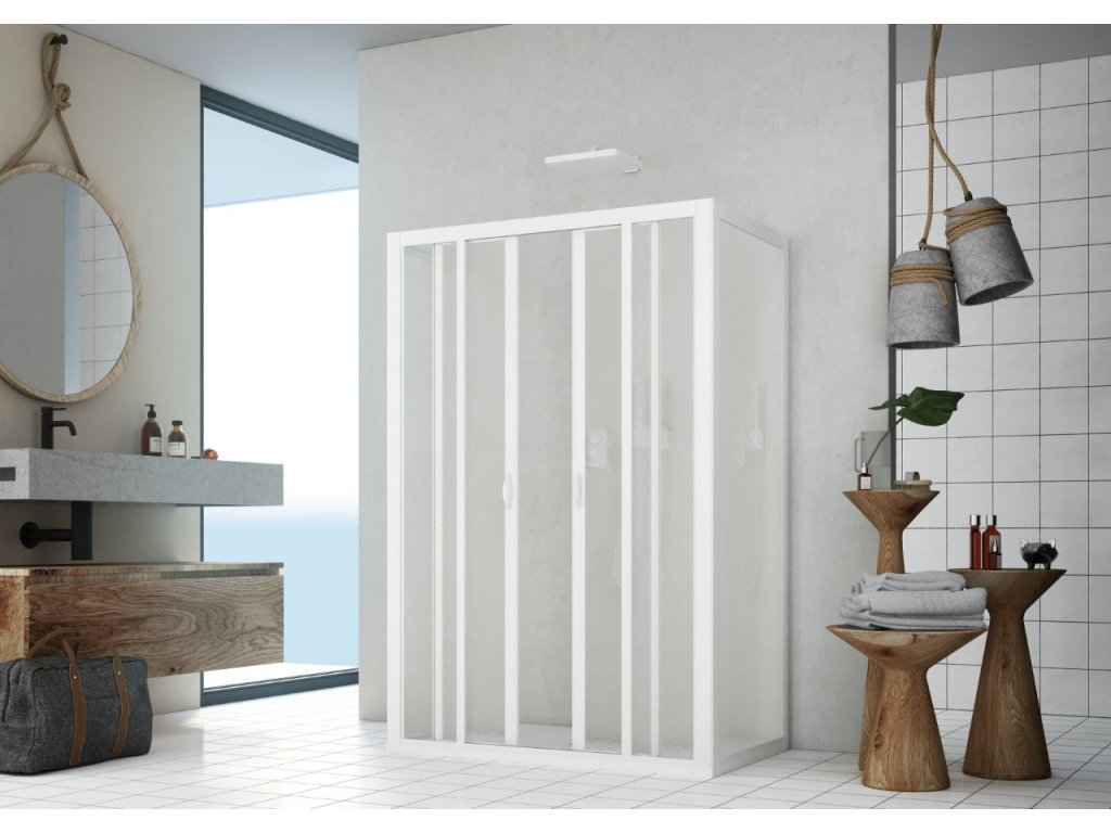 Sprchové dveře s exluzivním systémem Skipper ( technopolymer - nahrazení hliníkového profilu ), který zaručuje rezistenci vůči korozi, odlupu barvy a nárazům. Vysoce kvalitní plastové valivé pojezdy s výškovou regulací zajišťují hladký chod dveří a adaptaci v případě nerovnosti stěn.