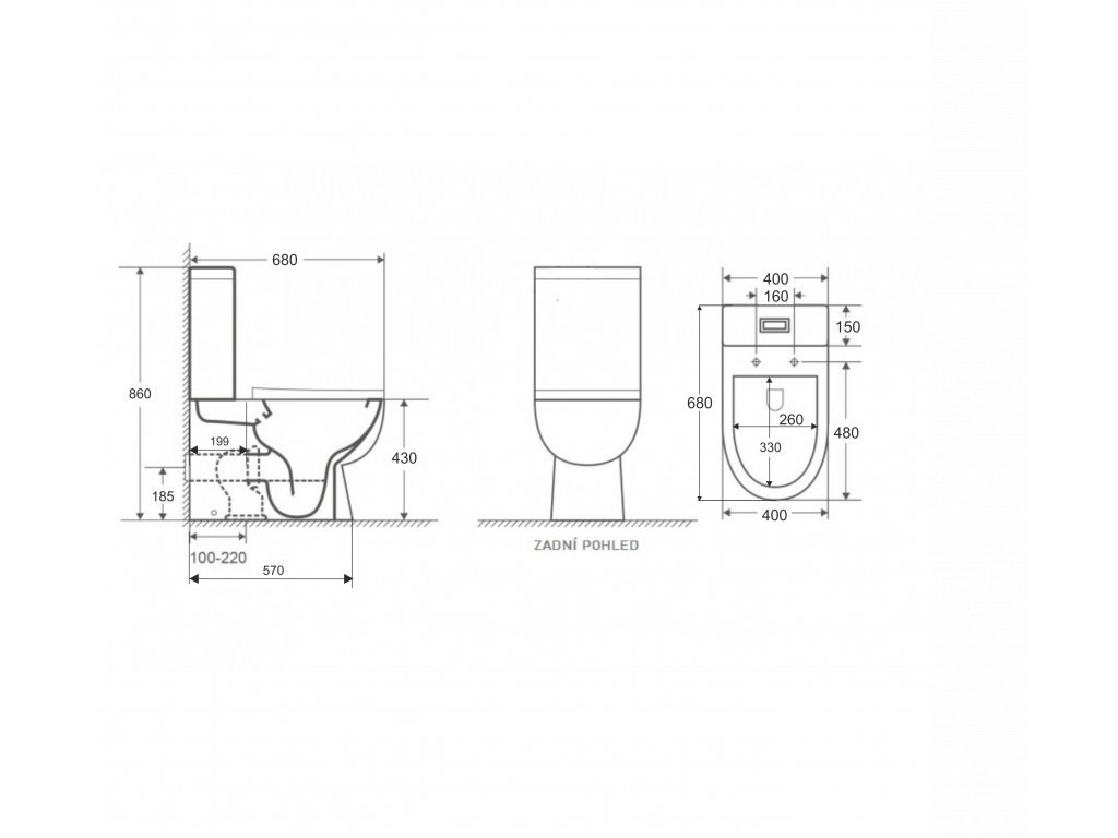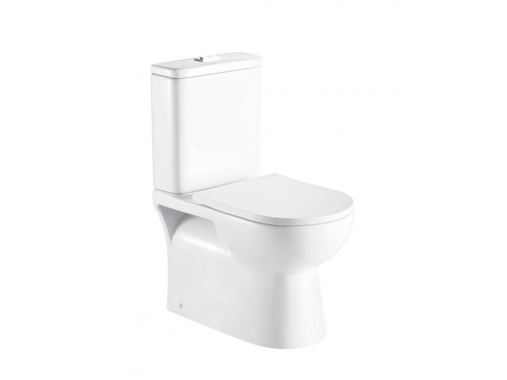 WC kombi se zadním odpadem s armaturou s úsporným splachováním, včetně plastového sedátka.