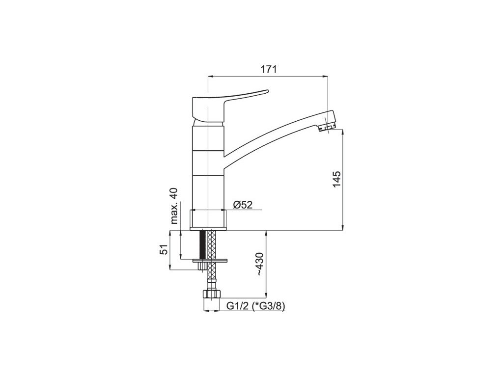Eleganta EL 014.00CR umyvadlová baterie stojánková bez výpusti chrom
