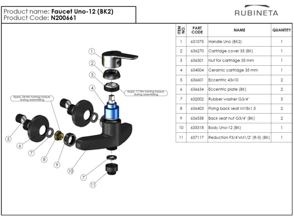 Sprchová nástěnná vodovodní baterie Olsen SPA UNO-12 NEW černá barva vyniká vysoce kvalitním zpracováním a spolehlivou funkčností všech součástí a materiálů.