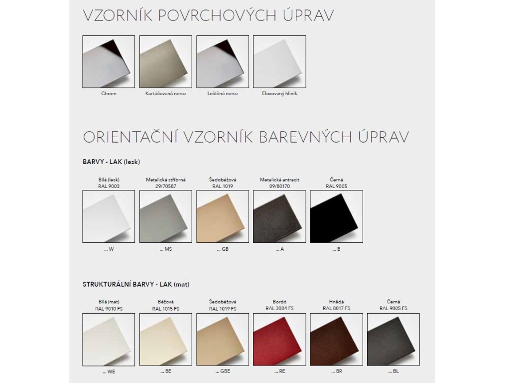 V případě zájmu můžeme nacenit také v jiném barevném provedení a v různých povrchových úpravách (viz. vzorník barev).