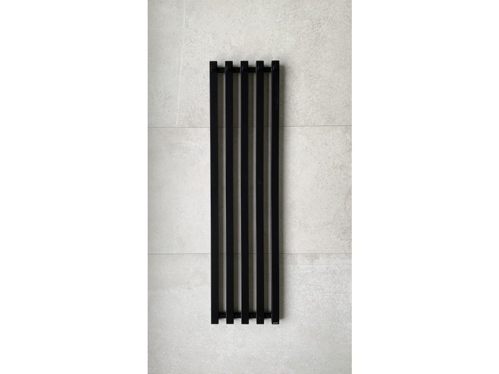 Radiátor Pluto P1/5 od firmy PMH. Radiátor s hranatými profily trubek patří mezi nejužší radiátory na trhu. Radiátor je doplněn o hranaté háčky ve dvou řadách pro snadné zavěšení ručníků.