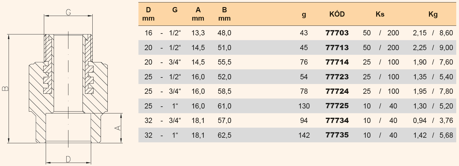 PPR DG přechodka s vnějším kovovým závitem 25x3/4" 77724