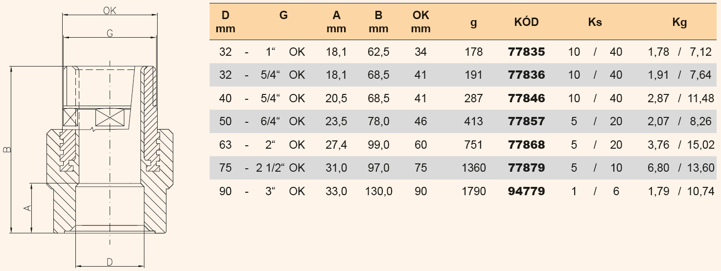 PPR DG přechodka s vnějším kovovým závitem 63x2" 77868
