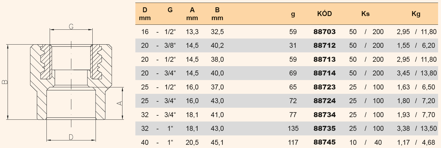 PPR DG přechodka s vnitřním kovovým závitem 32x1" 88735