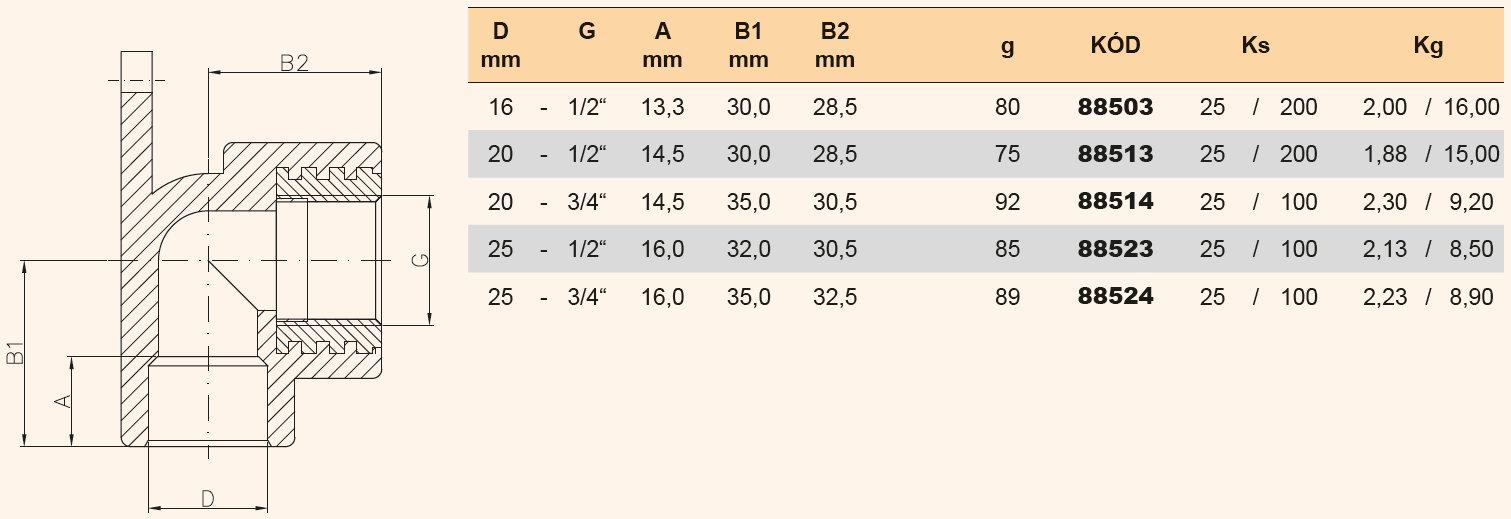 PPR nástěnné koleno s vnitřním kovovým závitem 20x1/2" 88513