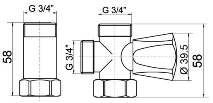 Novaservis pračkový ventil s mezikusem 3/4"x3/4"x3/4" mosaz CF3019