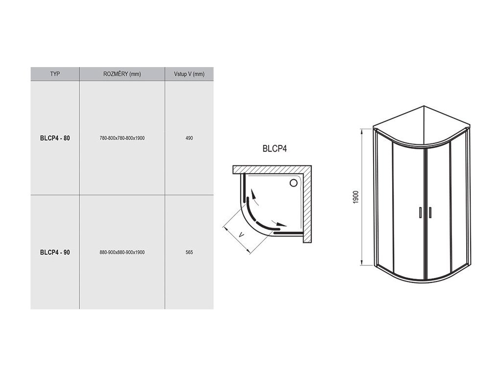 Ravak Blix BLCP4-80 x 80 x 190 cm sprchový kout čtvrtkruhový Transparent 3B240100Z1