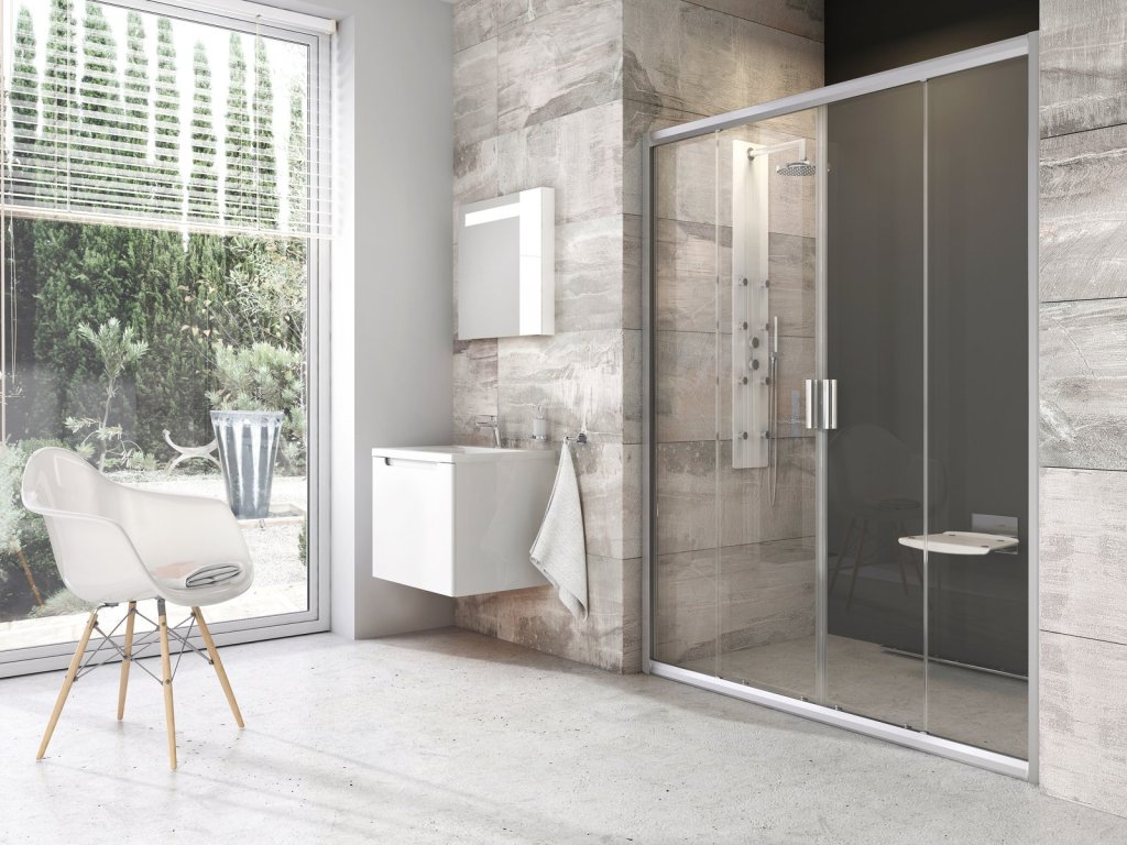Sprchové dveře BLDP4 posuvné čtyřdílné z řady Blix od firmy Ravak. Nejširší sprchové dveře na trhu se středovým vstupem. Ideální řešení pro vytvoření sprchového prostoru v nice o šířce až 200 cm.