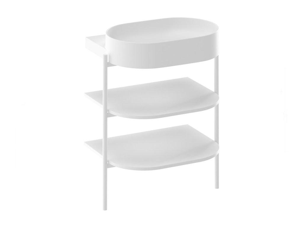 Otevřený policový nábytek Yard. Stojící kovová konstrukce s policemi CS Yard 60 k instalaci umyvadla Yard 60. V bílém matném provedení.Doplňkové parametry