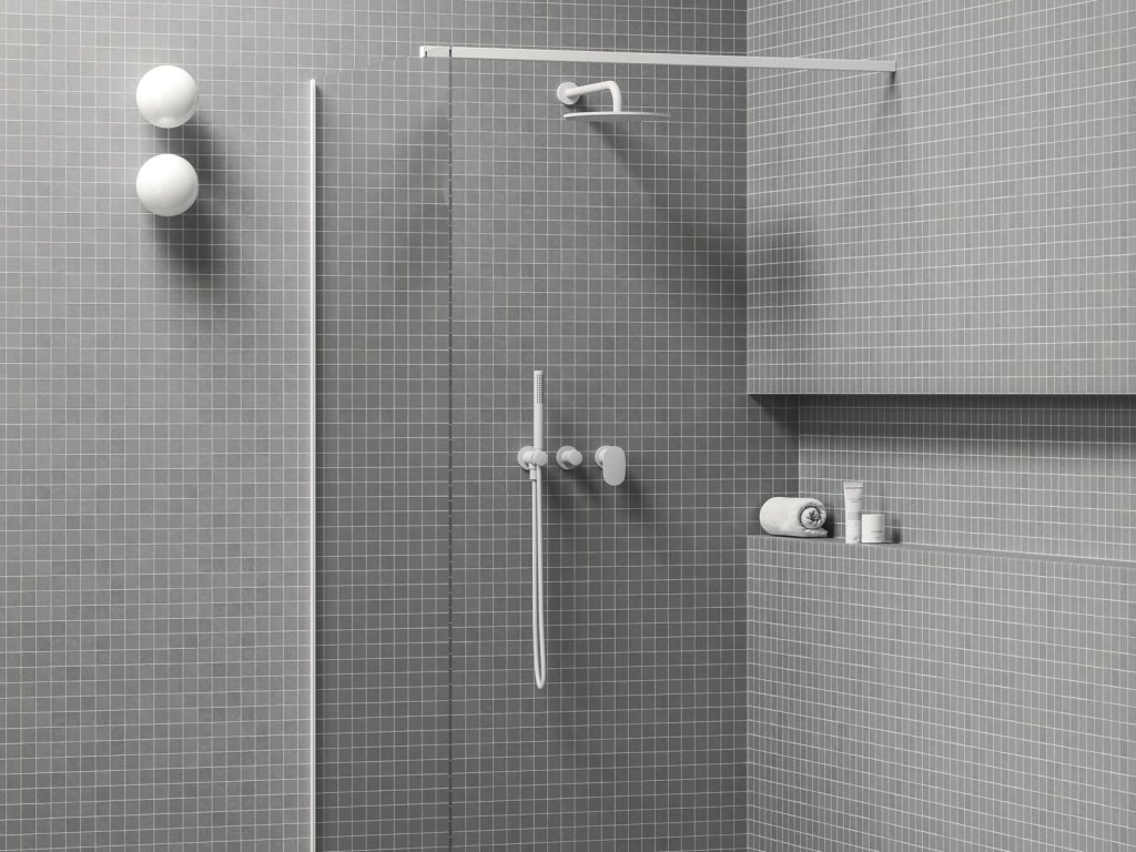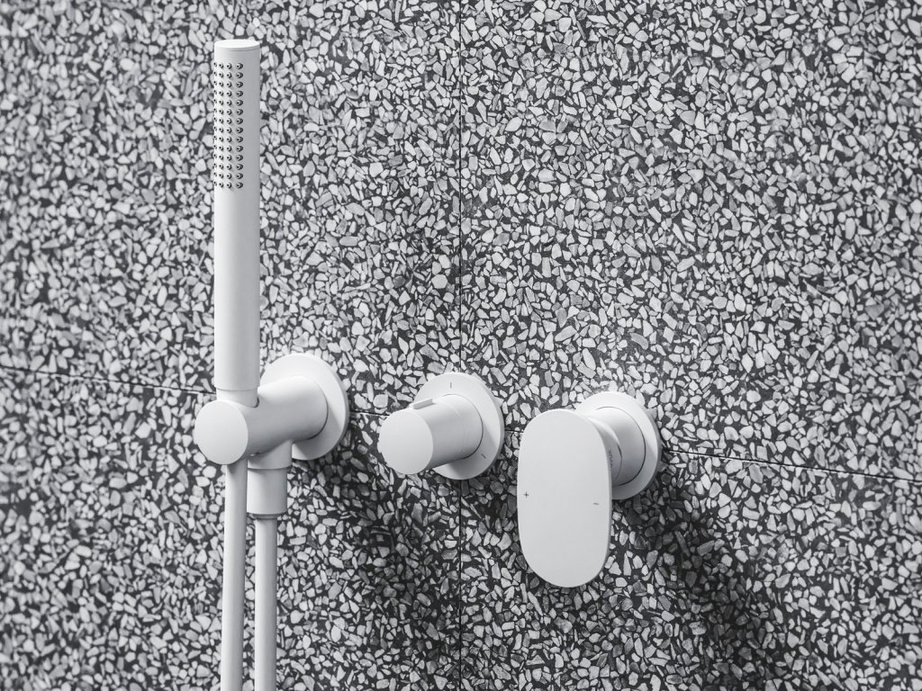 Podomítková 2cestná baterie Spring, se sprchovým setem, celotělová. V bílém matném provedení.Doplňkové parametry