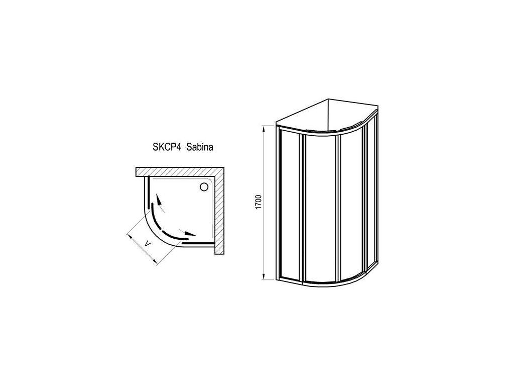 Montuje se do obloženého rohu koupelny na hlubokou vaničku Sabina. Celková výška sprchového koutu a vaničky je 2120 mm. Radius 500 mm.