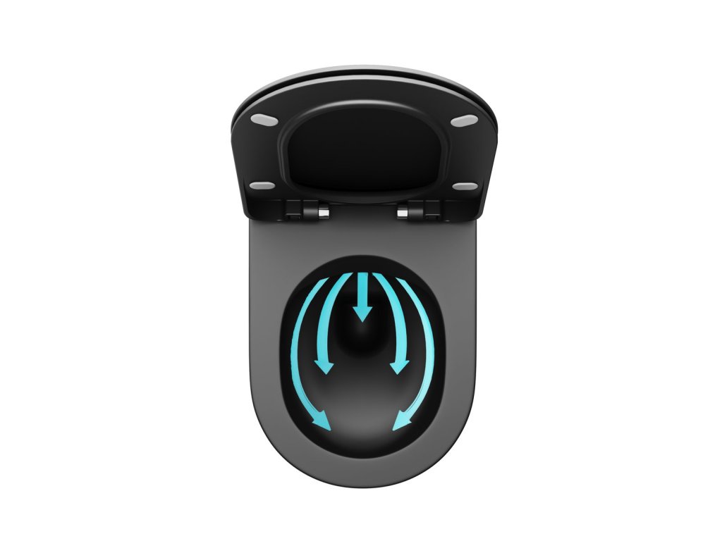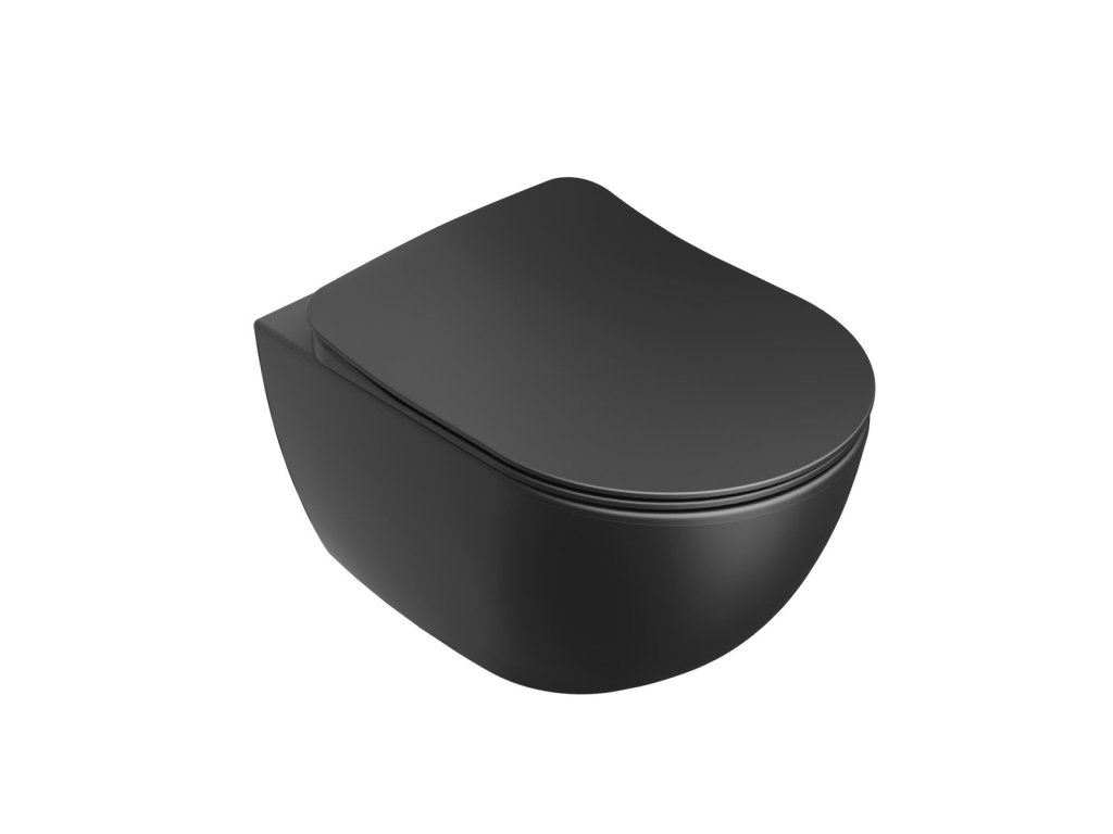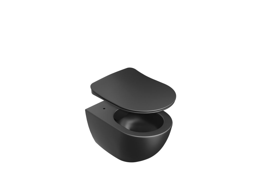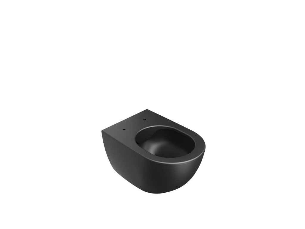 Kvalitní černý matný keramický materiál ve svěžím a domyšleném designu pro každý den. Konstrukce toalety bez oplachového lemu umožňuje spláchnutí celé plochy. WC je určeno k zavěšení na zeď.