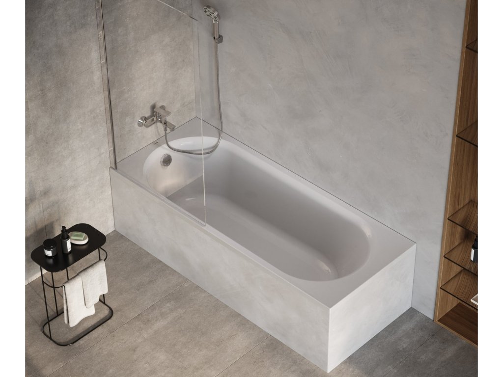 Zástěna se skládá ze svislého ustavovacího profilu a jednoho pevného dílu, s kterým nelze pohybovat. Minimum profilů a hladké bezpečnostní sklo o tloušťce 6 mm bez dekoru zjednodušuje údržbu. Otočením výrobku o 180° získáte variantu vstupu zprava či zleva. Vanovou zástěnu lze instalovat k obdélníkovým vanám (City, City Slim, Formy 01, Formy 02, 10°, Chrome, Classic II, Campanula II, Vanda II) nebo na jakoukoliv klasickou obdélníkovou vanu s rovným horním lemem.